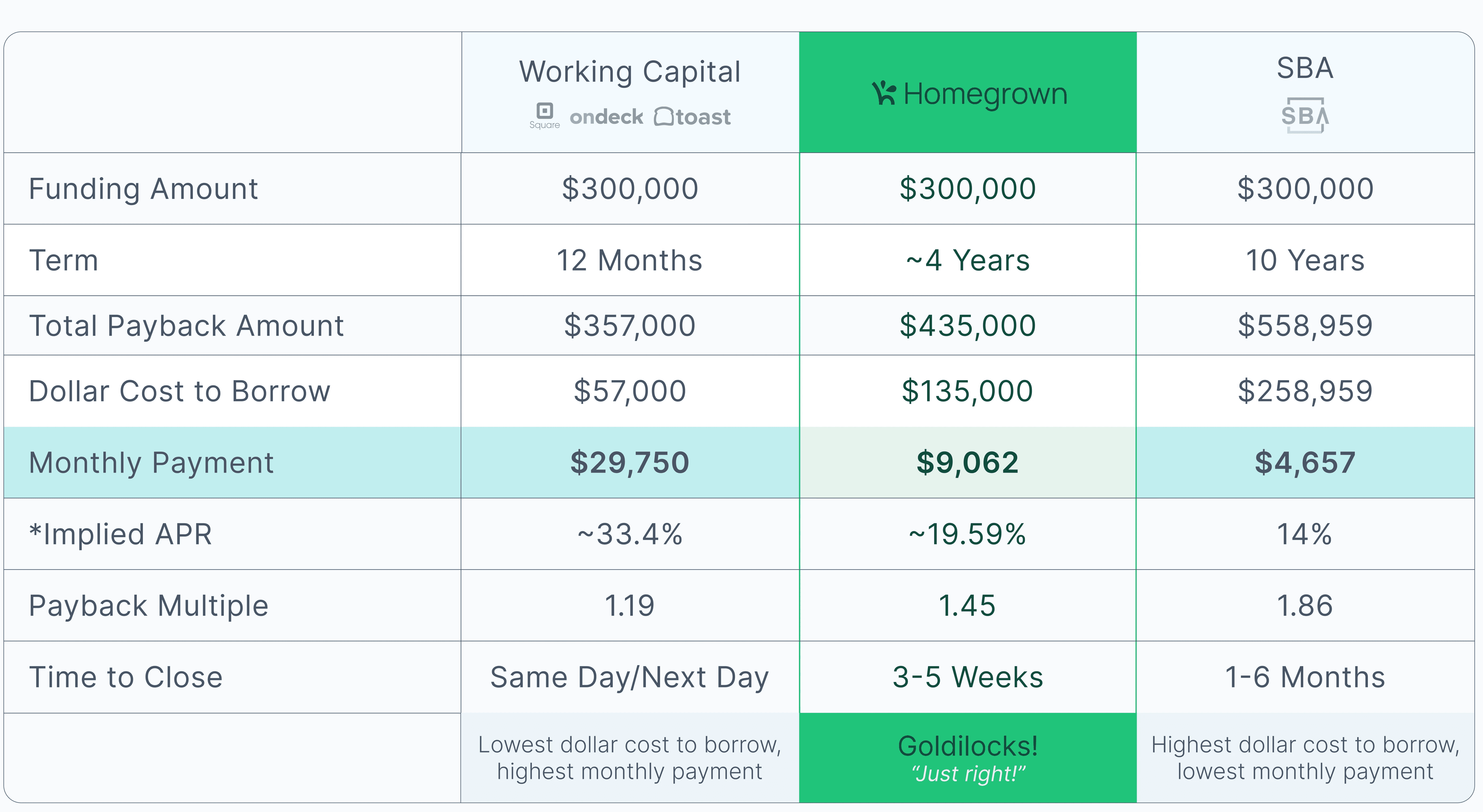 Homegrown provides growth capital on expected 3-5 year terms that preserve your cash flow.