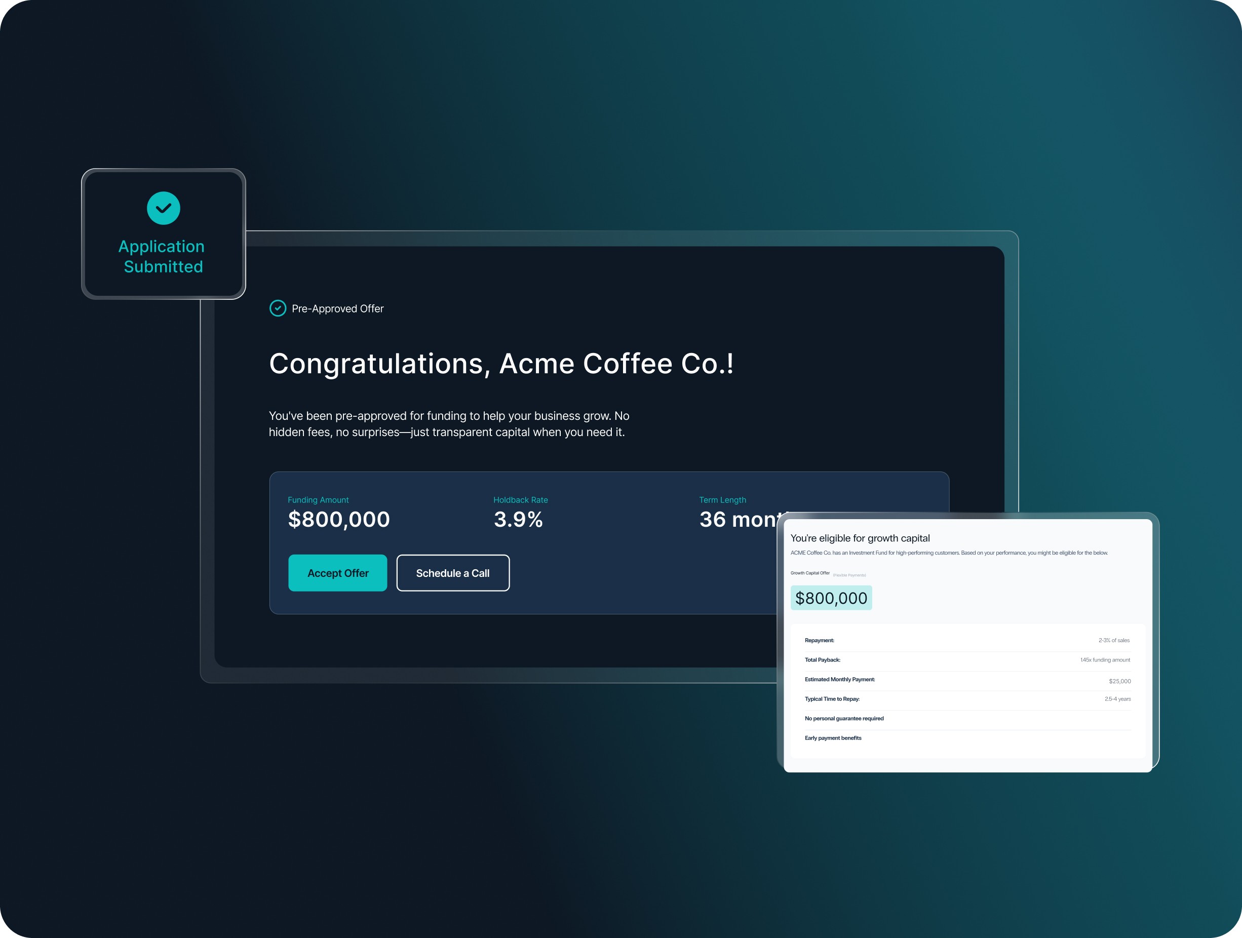 No complicated paperwork. Accept your offer online and get back to running your business.